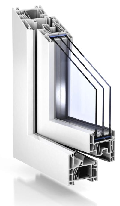 Sistema con forme squadrate che seguono il nuovo trend di mercato, con profili di spessore 76 mm con tecnologia a sei camere e tre guarnizioni di battuta.