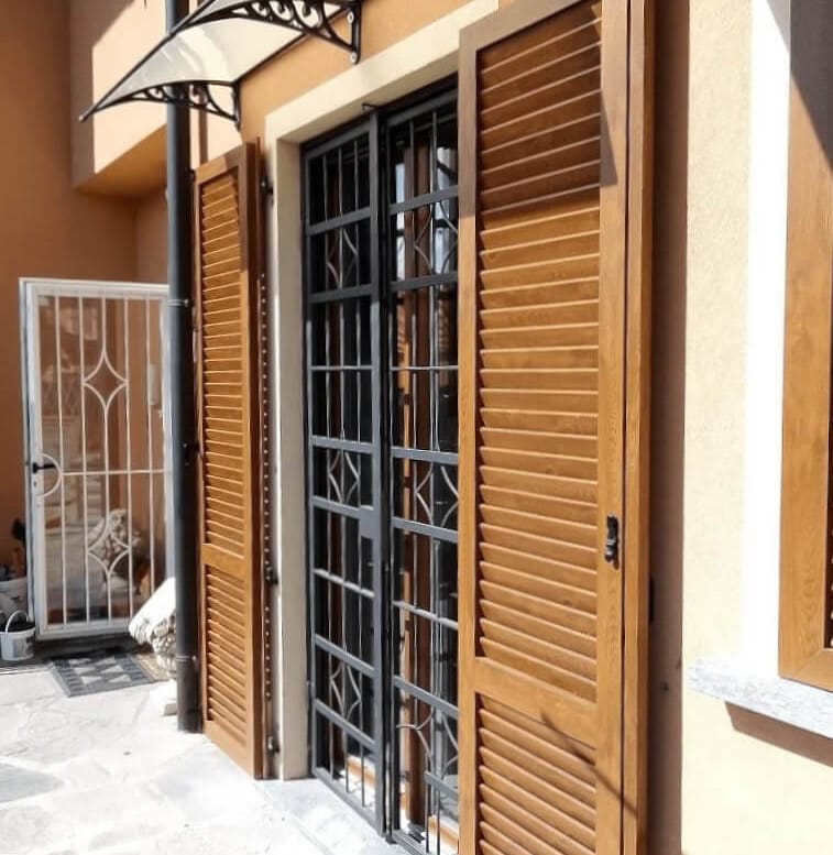 Sistema per la realizzazione di scuri esterni alla bolognese in PVC. Le pannellature sono realizzate tramite profili a doghe da 24 mm che prevedono all’ interno un adeguato rinforzo in acciaio zincato che viene attraversato da barre filettate per garantirne la migliore stabilità e la durata nel tempo, in più all’interno ha una cornice che ricorda gli scuri rustici di una volta. La ferramenta è montata esterna ai profili e viene fornita di colore nero.